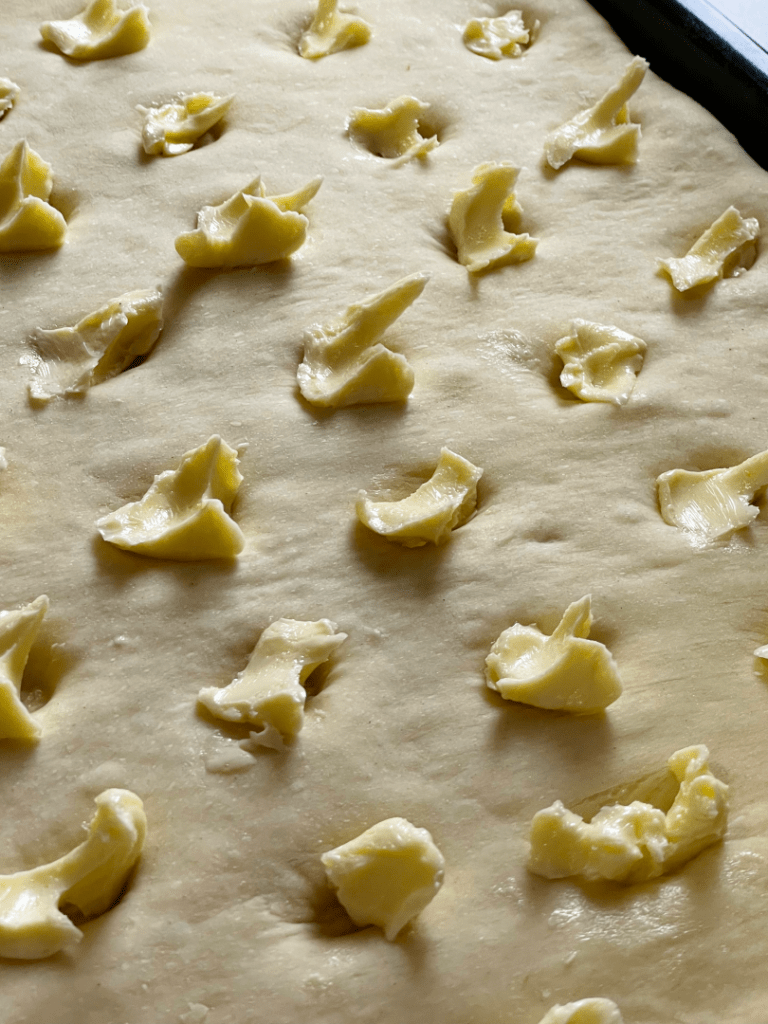 PS.: Butterkuchen lässt sich auch gut einfrieren und später im Warmluftofen auftauen. Dann ist er fast wie frisch.